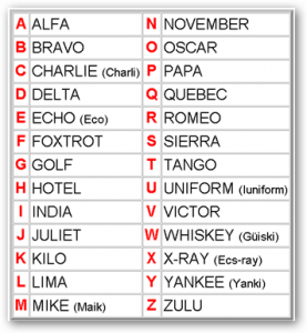 DELETREO: Se utilizará el alfabeto fonético internacional.
